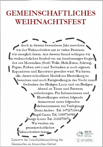 Während der Weihnachtszeit wurde von der Sozialhilfeeinrichtung der Gemeinden im Gebiet Carnia eine Initiative namens „Un Natale di Comunità˝ organisiert, die für alle Kommunen des Gebietes Carnia und Gemeinden bestimmt war.