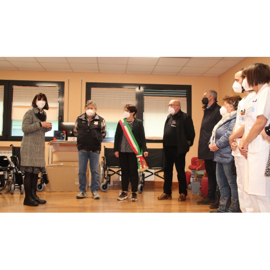 La cerimonie di consegne si è tignude tal salon de RSA, tal 2t plan dal edifici che al ospite ancje la cjase di polse, in presince dai rapresentants de Associazion di volontariât “Due Pistoni", che a son stâts ringraciâts de Direzion dal Distret e dal personâl medic, infermieristic, riabilitatîf e di assistence de RSA di San Denêl.