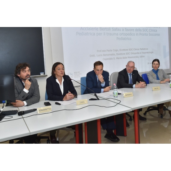 "Graciis a cheste donazion - e declare la professore Paola Cogo, diretore de Cliniche Pediatriche di Udin - si podarà realizâ un percors assistenziâl multidissiplinâr dedicât al frut che al rive tal Pront Socors cuntun braç o une gjambe rote. La scuadre ortopediche e chê dal Pront Socors Pediatric a lavoraran adun par ridusi e par stabilizâ la frature dal frut intes stanziis dal Pront Socors Pediatric, cence vê di puartâlu intal Pront Socors Ortopedic. Il metodi multidissiplinâr al garantirà che il frut nol sinti il dolôr che al ven dal tratament e al permetarà ai gjenitôrs di podê stâ simpri dongje dal frut par fâlu stâ seren e cuiet".