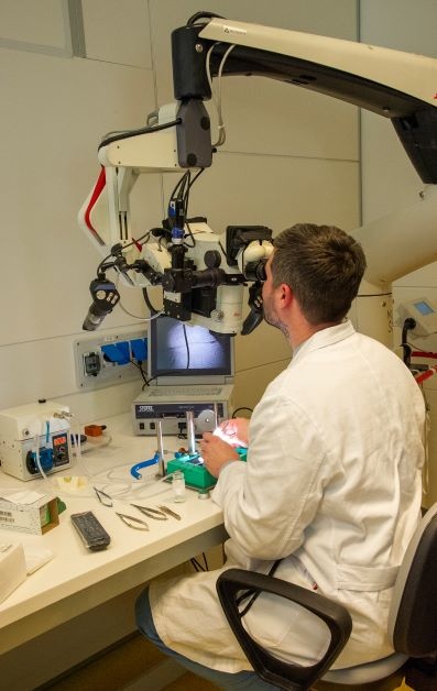 Il Centro di Simulazione e Alta Formazione dispone da oggi di una nuova sala di Microchirurgia, dedicata nello specifico all'esercizio di suture micro-chirurgiche e anastomosi grazie a 3 distinte postazioni di lavoro su trainer vascolari avanzati, che alloggiano vasi sintetici di diametro variabile da 1 a 8 mm costantemente irrorati con pompe peristaltiche. La dotazione tecnica prevede un microscopio operatorio, un microscopio da banco, un esoscopio e due miniloop, oltre a 3 diverse telecamere che permettono di seguire a monitor il lavoro dell'operatore attivo.