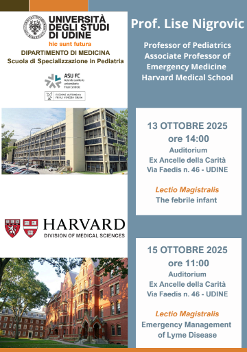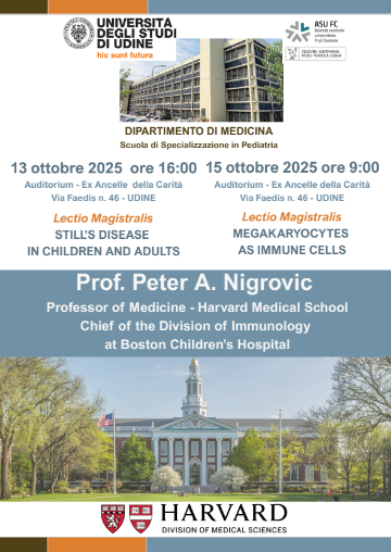 La Scuola di Specializzazione in Pediatria ed il Dipartimento di Medicina dell’Università degli Studi di Udine, nelle giornate dal 13 al 15 ottobre 2025, ospiteranno il prof. Peter Nigrovic e la prof.ssa Lise Nigrovic, visiting professors dell’Harvard Medical School di Boston.