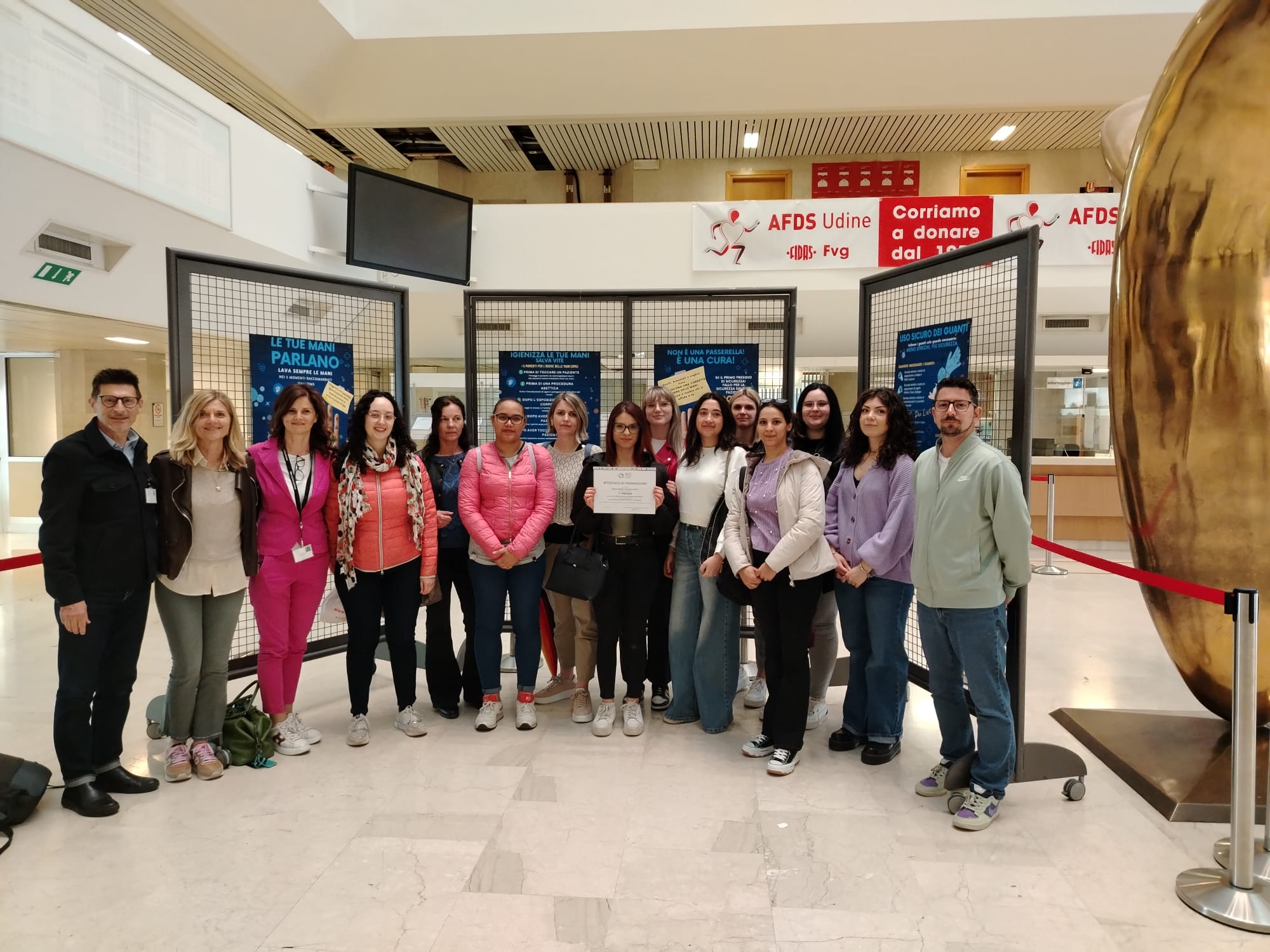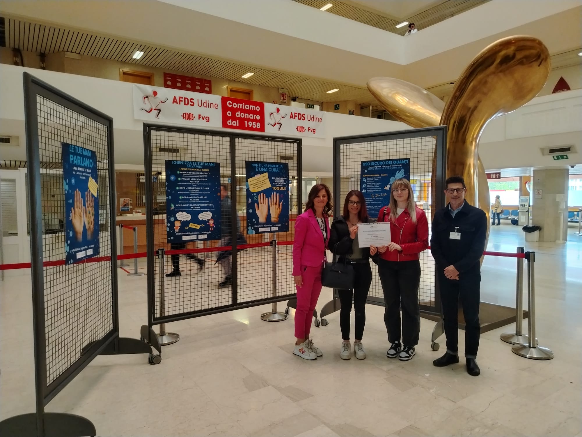 Oggi lunedì 5 maggio, presso l'atrio del Padiglione 1 del P.O. Santa Maria della Misericordia di Udine si è tenuta la proclamazione del vincitore del contest "Sfida Creativa sull'igiene delle mani", un contest nazionale promosso dalla Società Italiana di Igiene, Medicina Preventiva e Sanità Pubblica (SItI) - Gruppo Italiano di Studio dell’Igiene Ospedaliera (GISIO), rivolto agli studenti del Corso di Laurea di Assistenza Sanitaria dell'Università degli Studi di Trieste e Udine, con sede a Gorizia.