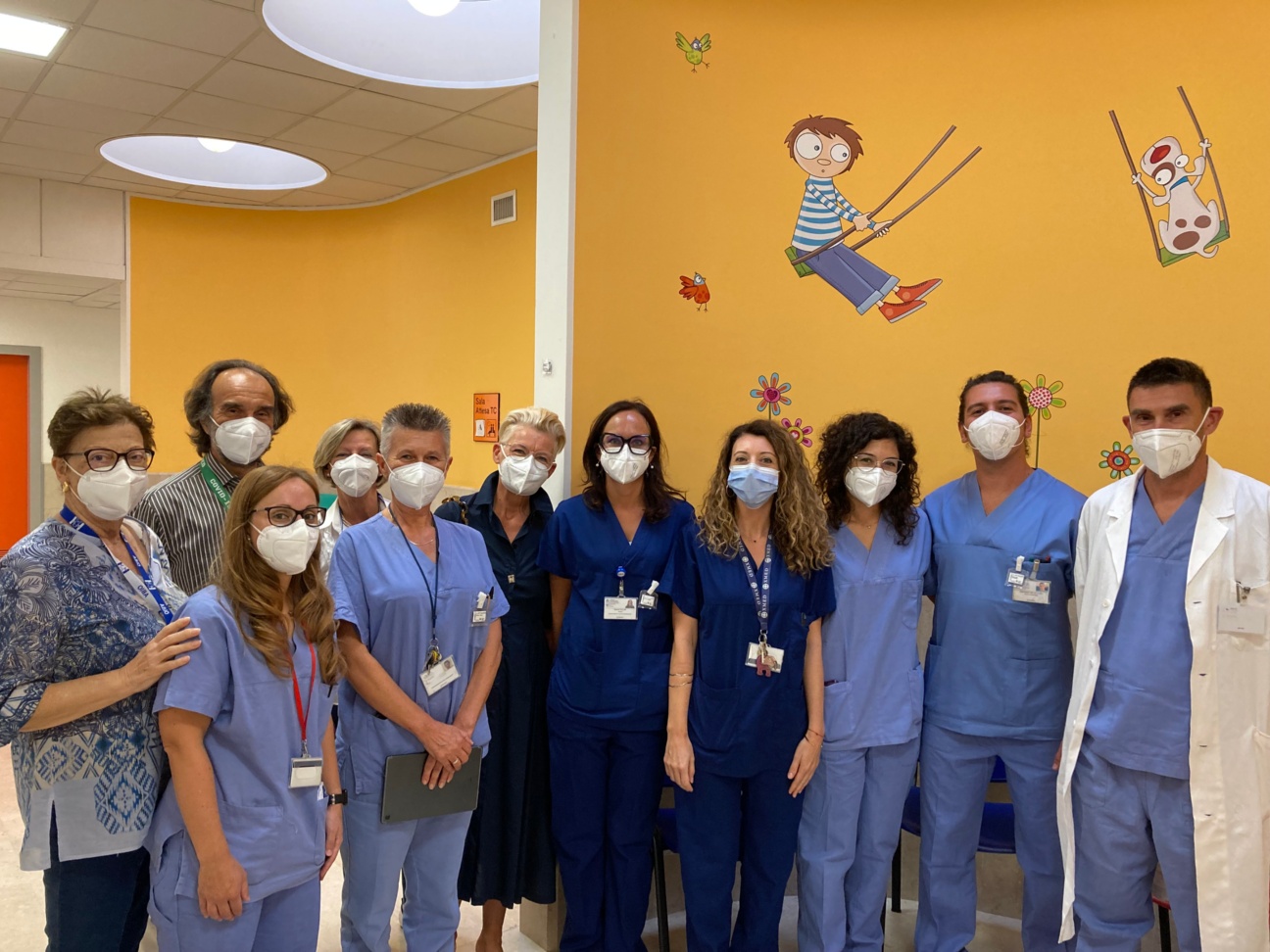 Dopo un confronto con la Clinica Pediatrica, è stata trovata la collaborazione dell'ABIO, che con l’entusiasmo che sempre caratterizza l’associazione, si è immediatamente prodigata per decorare le pareti della sala d'attesa e dei corridoi attigui per renderla più accogliente.