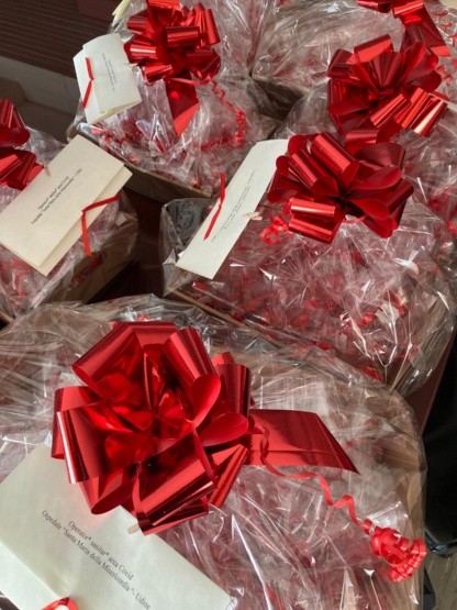 I pacchi sono stati realizzati interamente a mano dagli studenti, che hanno impreziosito il dono con delle frasi dedicate al personale sanitario.
