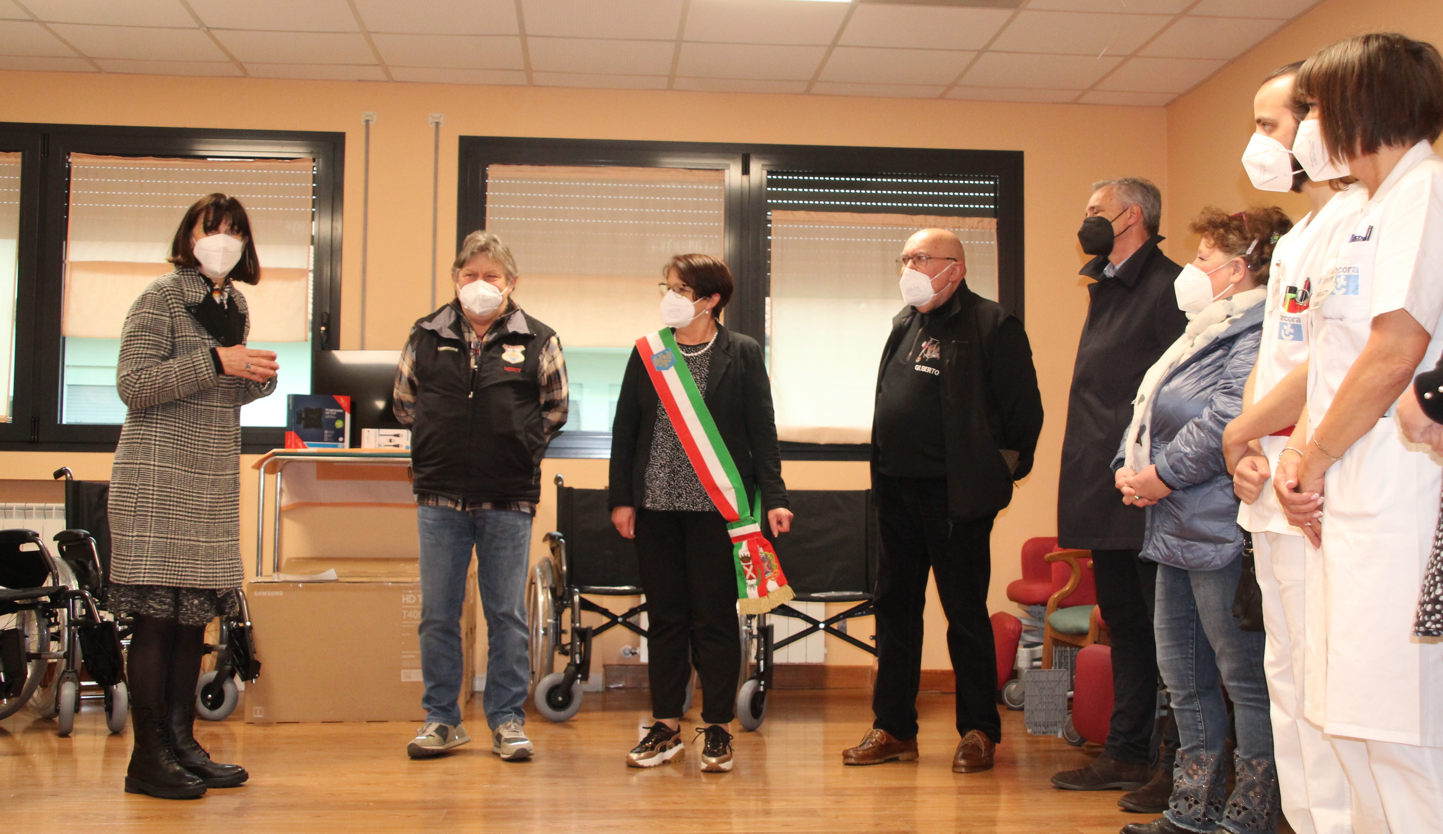 La cerimonia di consegna si è tenuta presso il salone dell'RSA al 2° piano dell'edificio che ospita anche la casa di riposo, alla presenza dei rappresentanti dell'Associazione di volontariato "Due Pistoni", ringraziati dalla Direzione del Distretto e dal personale medico, infermieristico, riabilitativo e di assistenza della RSA di San Daniele.