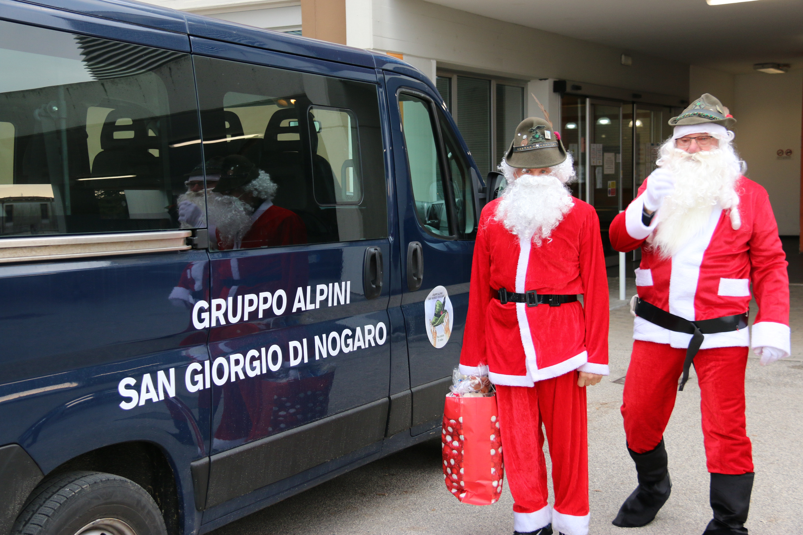 Il gruppo Alpini di San Giorgio di Nogaro capitanata da Davide De Piante con i suoi 3 simpatici Babbi Natale, ha fatto visita al Reparto di Pediatria dell'Ospedale di Latisana, come ormai da tradizione, carichi di doni per tutti: tanti coloratissimi peluche per i bambini della Pediatria e del Nido e dolcetti per il personale del reparto e per tutti i vari servizi e Reparti dell'Ospedale, come augurio di buone feste e segno di gratitudine per il lavoro svolto.