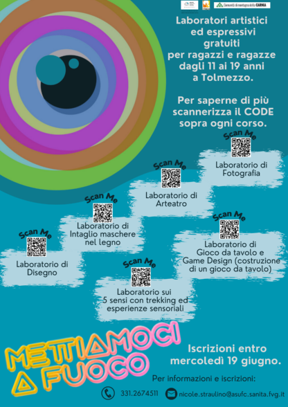 L’estate tarda ad arrivare? Noi NO! Sono tornati i laboratori “Mettiamoci a fuoco”, rivolti a ragazze e ragazzi della Carnia dagli 11 ai 19 anni, che nel corso dell'estate avranno modo di esprimere la loro creatività guidati da artigiani ed artisti locali.