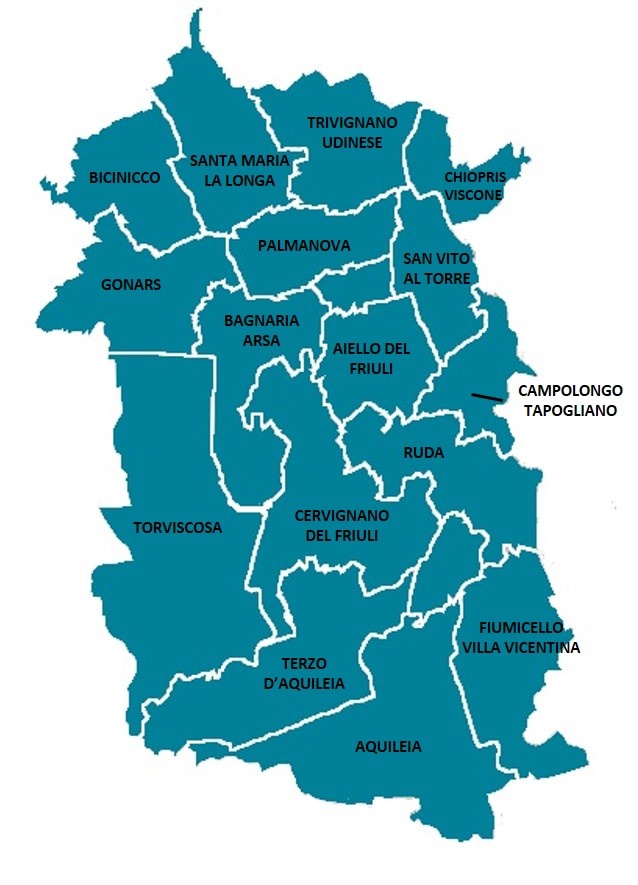 L'area di competenza del Distretto Agro Aquileiese comprende i comuni di: